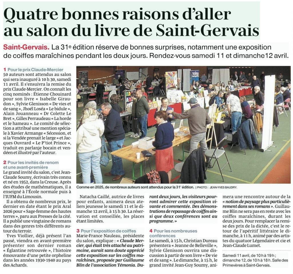 SDL #STG85 #SalonDuLivreStGervais85 #SaintGervaisVendee #Vendee #Maraichin #ClaudeMercier #SDLCM #salondulivre #enfance #jeunesse #mangas #bd #slam #chant #Kamishibaï #kamishibai #contes #roman #thriller #polar #policier #fantastique #histoire #recit #biographie #anticipation #dystopie #utopie #ecriture #autobiographie #temoignage #conference #atelier #rencontres #Auteurs #auteur #livre #Lecture #Livres #Culture