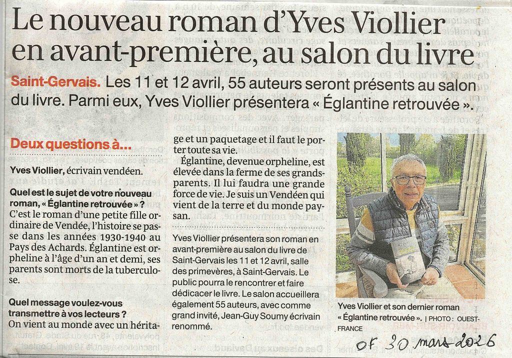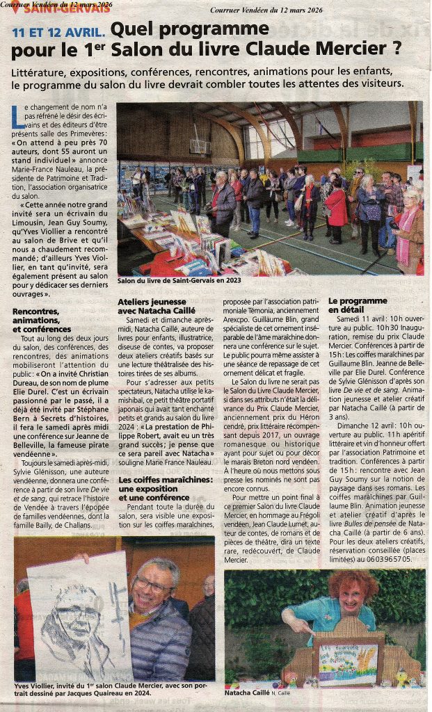 Des infos sur l’affiche 2026 Salon du Livre Claude Mercier – St-Gervais 85 : Logo et Peinture : Jacques Quaireau – illustrations à titre indicatif – Photocomposition SDL par iA et Powerpoint notamment.